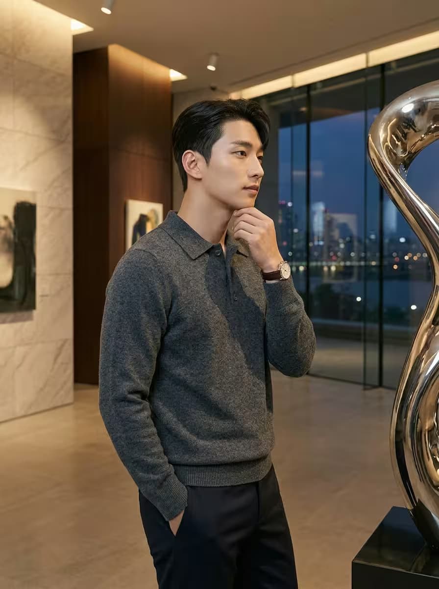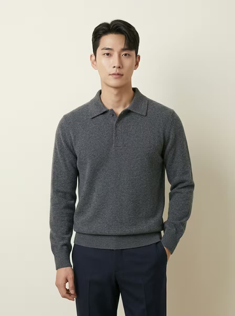 맨살에 닿아도 부드러운 프리미엄 원사로 제작된 롱슬리브 카라 니트입니다. 클래식한 3버튼 디테일과 탄탄한 시보리 마감으로 깔끔한 핏을 유지해 주며, 고급스러운 차콜 그레이 컬러로 어떤 하의와도 잘 어울립니다. 단독 착용은 물론 이너로도 활용도 높은 옷장 속 에센셜 아이템입니다.