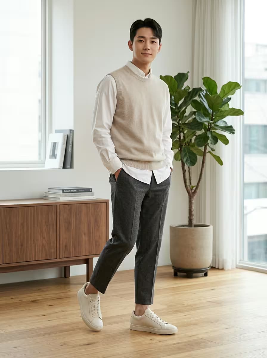 자연스러운 가죽 본연의 질감이 고급스럽게 살아있는 프리미엄 레더 소재를 사용하여, 신을수록 발 모양에 맞게 유연하게 길들여지며 최상의 편안함을 선사하는 미니멀 스니커즈입니다. 군더더기 없이 매끈하게 떨어지는 클래식한 실루엣과, 탄탄하게 중심을 잡아주는 견고한 러버 아웃솔의 밸런스가 돋보입니다. 어퍼의 절개 라인부터 신발끈, 밑창까지 모두 톤을 맞춘 깨끗하고 세련된 화이트 컬러로 슬랙스, 데님, 치노 팬츠 등 어떤 하의와도 완벽하게 어우러집니다. 편안한 데일리 캐주얼룩은 물론, 포멀한 셋업 슈트의 무게감을 세련되게 덜어주는 믹스매치 포인트로도 활용도가 매우 높습니다. 유행을 타지 않는 정갈한 감성과 뛰어난 내구성으로 사계절 내내 당신의 발걸음을 함께할 하이퀄리티 에센셜 슈즈입니다.